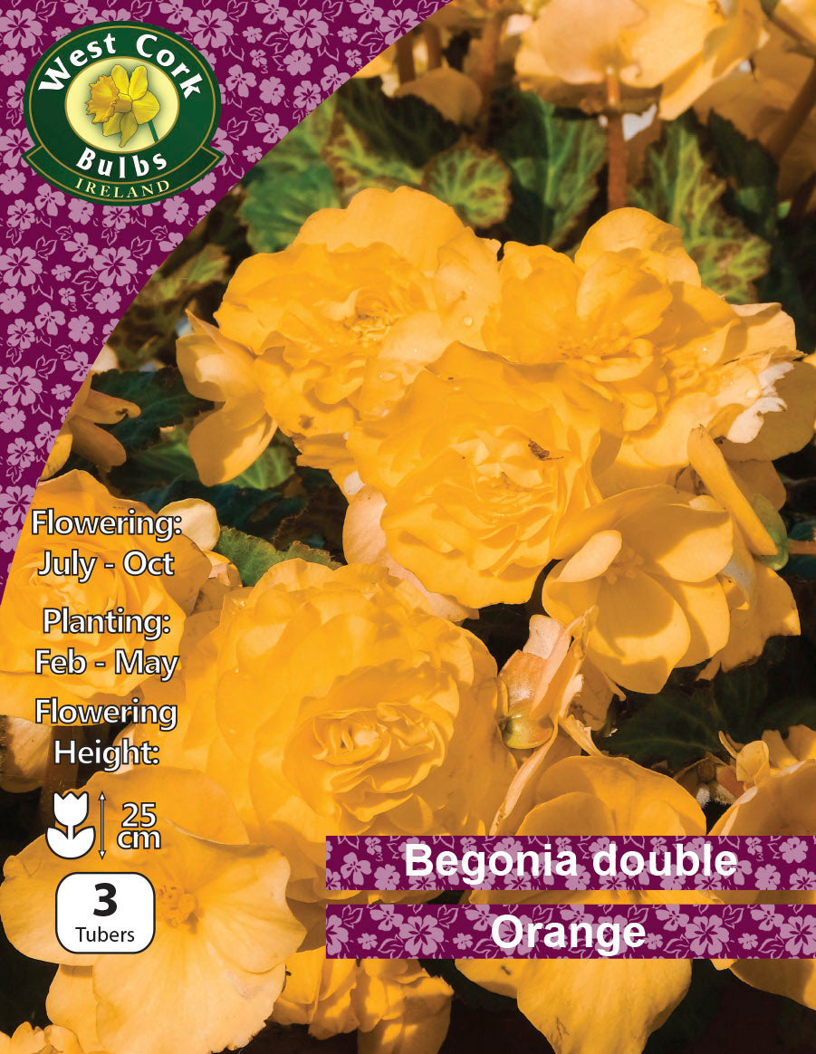 Les Doubles Bégonias Orange produise une floraison large d'un orange très saturé, qui ressemble à la fleur de Camélia. Un choix parfait pour illuminer un coin un peu sombre ou donner du charme près de votre terrasse.